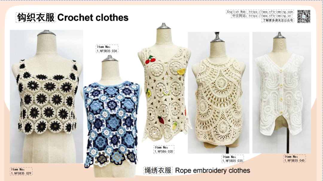 本期新品给大家带来纯棉刺绣花边,以及刺绣领花和钩针衣服